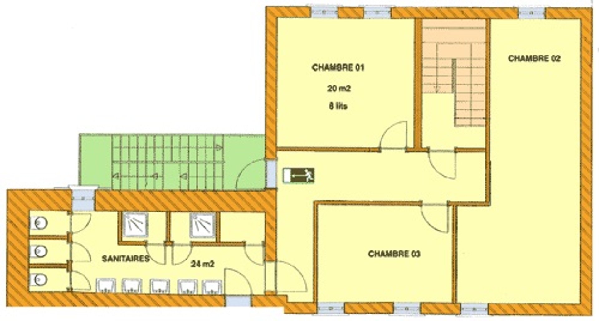 Schlafraum mit 7 Etagenbetten (14 Betten)